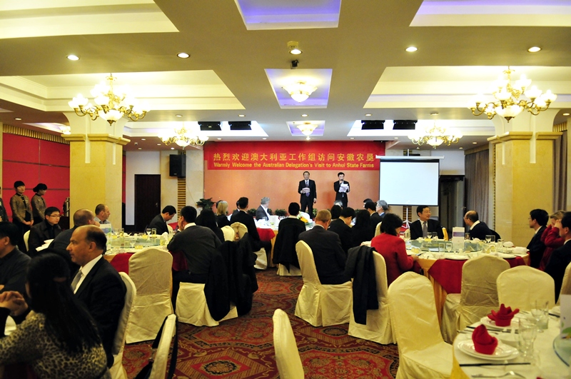 交流会上,李卓民总经理致欢迎辞,并向客人介绍了安徽农垦基本情况及走出去发展战略,随后播放了农垦宣传片并在合肥黄山大厦宴请了澳方访华代表团一行。约翰·兰特里团长致答谢辞,对安徽农垦的热情招待表示感谢。双方表示今后要加强在农业投资领域的交流合作。(杨涛)