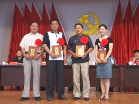 大会在雄壮的《国歌》声中开始,党委书记杨俊宇宣读了场党委《关于表彰先进党组织、优秀党务工作者和优秀共产党员的决定》,场党委委员对5个先进基层党组织、4名优秀党务工作者和33名优秀共产党员进行了颁奖,各类先进典型作了精彩的发言。会议同时表彰了庆祝“七一”构建和谐农场征文比赛、学习“决定”理论知识测试等系列党日活动中涌现出的获奖单位和个人。场党委副书记张建民代表党委发表讲话。“讲话”首先回顾了中国共产党走过的86周年光辉历程,总结了农场一年来农场党建工作和“三个文明”建设取得的成就。对如何围绕中心推进党建工作提出五点希望:一是注重发挥党组织、党员在和谐农场建设中的作用;二是广大党员做和谐家庭、和谐邻里的带头人;三是组织开展“党员承诺制”活动;四是创新民主评议党员制度,启动党员“挂红星”工程;五是开展好“寻找身边亮点”,积极“争先创优”活动。张建民最后要求各级党组织重点做好先进性教育活动、加强新农村建设、强化组织建设、和谐企业建设、党建知识培训、迎接党的十七大的理论学习等工作,特别是扎实开展好“作风教育月”活动。他号召广大党员干部立足“五个做起”:心系大局,振兴农场,从本职做起;转变职能,服务基层,从实际做起;严守党纪,练就自律,从点滴做起;提高修养,增进团结,从我做起;树立正气,创文明机关,从现在做起。做到“十带头”:带头学政策学科技、带头执行党的决定、带头进行产业结构调整、带头参加公益事业、带头参与文明创建活动、带头执行计划生育政策、带头维护稳定、带头建言献策、带头帮扶帮困、带头提高服务质量,为建设新农场做出应有的贡献。