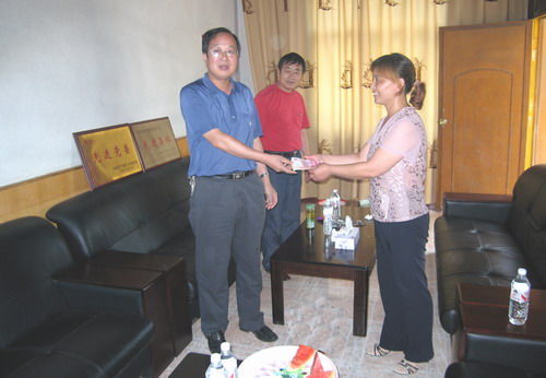 7月17日上午,颍上县总工会主席林美学、副主席何海等及时赶往焦岗湖农场看望、慰问广大受灾职工。