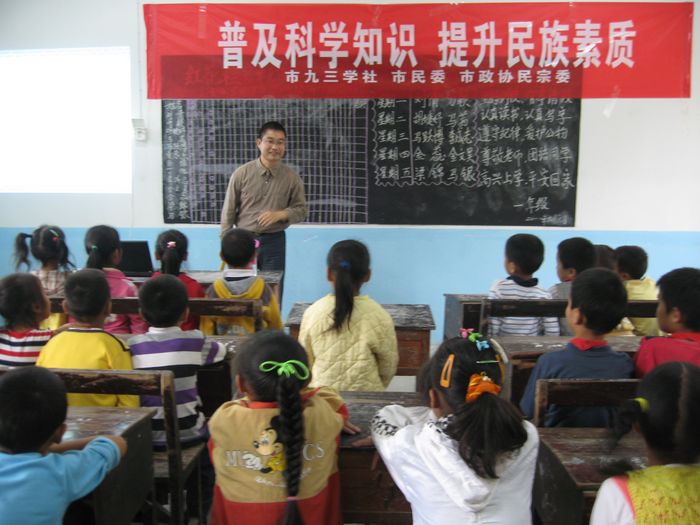 当天上午,一场送科技活动正在三益分场境内的马店回民小学校园里进行着。市九三学社主委、安庆师范学院教授胡万宝博士为全体回民师生上了一堂别开生面的科普讲座,师生们每人还获得了一份《民族团结宣传教育材料》。