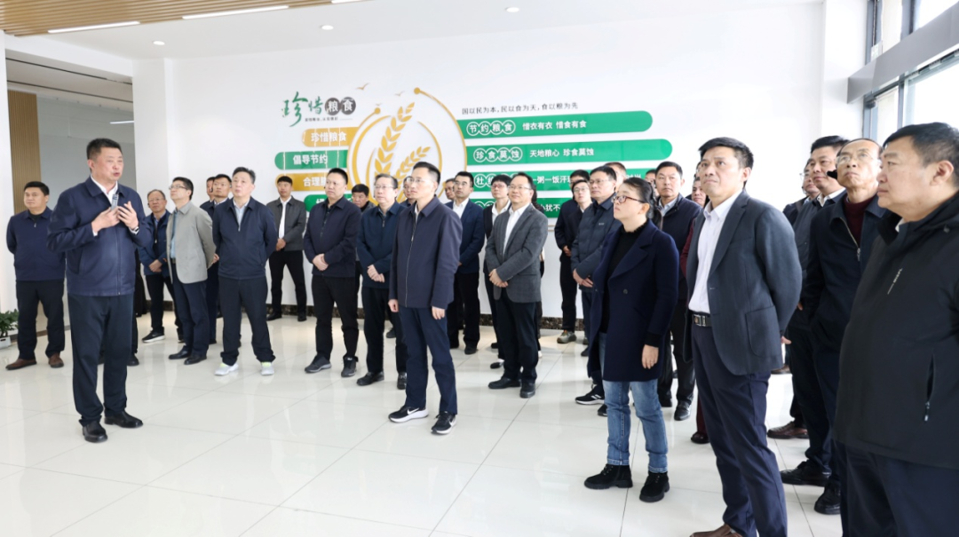 会前,郭家满带队参观考察了蚌埠市三家标杆食品企业,龙亢农场雁湖面粉加工项目、统一经营“千亩方”示范片、农机库和美丽农场建设等。