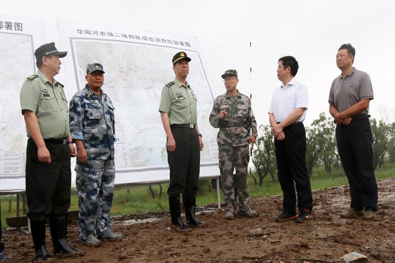 华阳河农场承担着长江同马大堤内百余公里湖堤的防洪任务。杨征在华阳河二场大堤听取了农场场长谢广和就防汛准备及工作部署的情况汇报,仔细询问了2016年农场受灾情况,强调要健全军地信息互通机制,军民携手、团结一心,共同做好大堤防汛工作,营造安全稳定的社会环境李龙