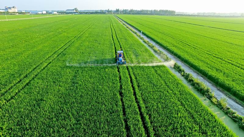 连日来,安徽农垦龙亢农场组织农技人员全力以赴开展水稻病虫害防治、水肥运筹、田间除草等工作,确保丰产丰收。(安徽日报