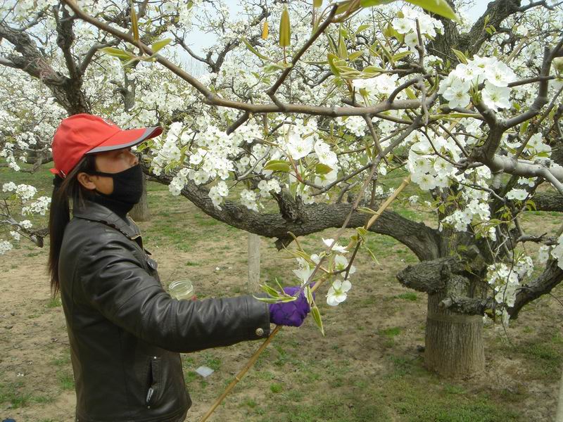 此时正值梨花盛开之时,省农垦集团砀山果园场职工忙于给梨花授粉。