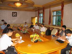 8月15日,江西省农垦代表团一行7人在省农垦集团 公司党委书记、董事长丁俊先的陪同下莅临龙亢农 场考察工作。场长李家堂向他们汇报了龙亢农场改 革发展情况,考察团一行还参观考察了场办学校和 医院等单位.( 王戴群)