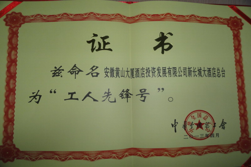 新长城大酒店:总台被命名为全国“工人先锋号”